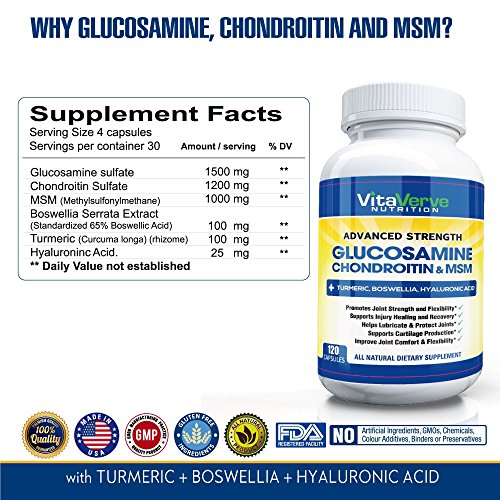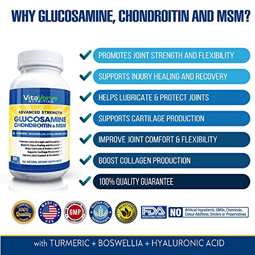Providing your joints with the nutrients at the right amounts will help them heal, recover and improve. Vitaverve Nutrition's Advance Strength Joint Supplement is a powerful combination of 1500mg of Glucosamine Sulfate, 1200mg of Chondroitin, and 1000mg of MSM with a boost of Boswellia, Turmeric, and Hyaluronic Acid. These bone and joint health supplements are for people looking for more holistic measures when dealing with health issues. Advance Joint Supplement For Pain Components such as the Glucosamine Sulfate, Chondroitin Sulfate, MSM, and Turmeric are all anti-inflammatory, which helps relieve tenderness of the joints. The Hyaluronic acid acts as a lubricant for smoother joint movements and lesser friction on the joints. Adequate Joint Support For Men And Women Elderly men and women are not the only ones who can benefit well from this joint pain supplement. These are great for highly active individuals such as athletes, stuntmen, dancers, and weightlifters, just to name a few. More Than Just A Glucosamine Chondroitin Sulfate Capsule For Joints These supplements are not only good for joints but for other parts of the body as well. The anti-inflammatory ingredients help prevent chronic diseases which may arise from inflammation. MSM is a potent anti-oxidant that helps detoxify the body while glucosamine helps in bone healing. This supplement also helps the digestive tract for improved digestion. 0