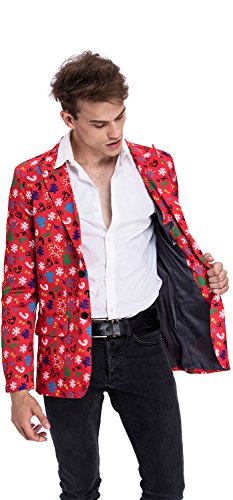 -. Brand : YOU LOOK UGLY TODAY -. Department : mens -. Feature : 1.Notice: please have a look at our size chart on the left image to see which of our 6 different sizes would suit you best. Because our suit is slim fit jacket , so we recommend you choose one larger size than your actual size if you want a loose jacket. / 2.GET MORE FOR LESS. Enjoy the benefit of premium quality fabric at an affordable P.R.Ice. Our jacket is carefully crafted from a superior lightweight 100% polyester fabric that is durable and will wear well for years to come. / 3.STAND OUT IN STYLE. Benefit from great style for any occasion. Boasting a classic design in a standard regular fit and featuring a unique and playful pattern, the jacket is ideal for festive season fun or a dress-up party. / 4.COMFORT IS KING. Take advantage of top-notch tailoring for a look that's not just eye-catching, but comfortable too. No more trips to the dry cleaners. Save both time and money. Our Jacket is machine washable for the ultimate in ease and convenience. / 5.OWN THE LOOK. The set includes an elegant two-button suit jacket with two side pockets, classic peak lapels and inner side vents. -. ProductGroup : Apparel -. ProductTypeName : ADULT_COSTUME -. Title : YOU LOOK UGLY TODAY Mens Christmas Party Suit Coat Jacket Funny Blazer Costumes With Santa Reindeer