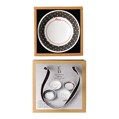 Inspired by Ellen's love of artisanal, yet simple designs, ED crafted by Royal Doulton encourages everyone to embrace their own style and express their individuality throughout all parts of life. Bringing Ellen's personality to life, the Signature Mixed Set is inspired by Ellen's favorite textile print and features her Love signature. Using a combination of prints and a neutral color palette, this set of four 5.5" Bowls is both decorative and functional. Perfect for anything from snacks and desserts to storing jewelry or keys, these bowls are a must-have.Feature