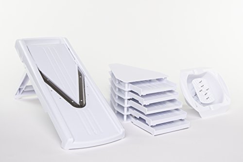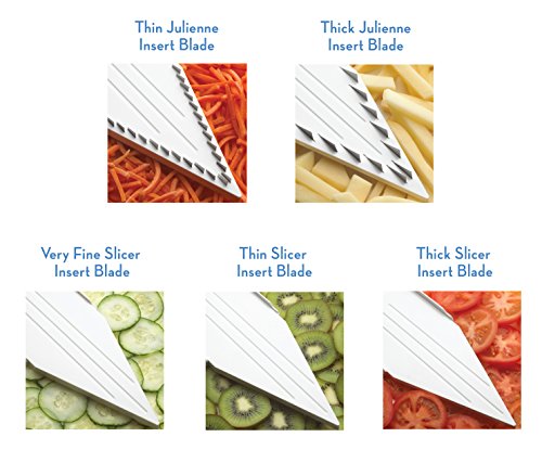 - ★ HOLIDAY SALE! ★ CUSTOMER SERVICE AND WARRANTY ARE WHAT MATTER: Unlike other mandoline choppers, Dynamic Chef V-Slicer offers 5 SLICING OPTIONS including a julienne mandoline option. 1) Thin Julienne blade, 2) Thick Julienne blade, 3) Very Fine Slicer, 4) Thin Slicer & 5) Thick Slicer. The mandoline cutter has EASY STORAGE foldable stand with no-skid feet & sharp, stainless steel blades for FAST, UNIFORM SLICES.