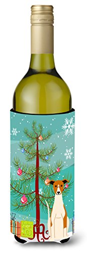 Caroline's Treasures BB4224LITERK Merry Christmas Tree Whippet Wine Bottle Beverage Insulator Hugger, 750ml, Multicolor