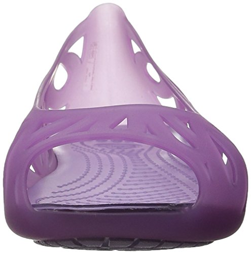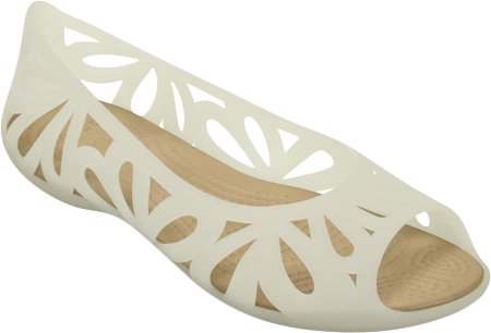 One of our lightest, brightest flats features a pretty floral cutout pattern and a flirty open-toe style. Women tell us they love the lightweight comfort, and we think you'll love it, too. The trendy translucent uppers feature a CrosliteTM comfort foam footbed and outsole for all-day cushion. Incredibly light and fun to wear.Feature