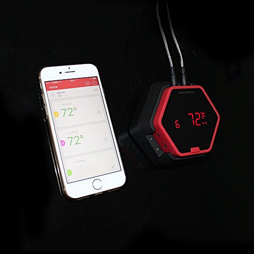 Inkbird Grilling BBQ Oven Smoker Meat Bluetooth Wireless Thermometer 150ft Digital 50 meters Cooking Barbecue C/F Display with Stainless Steel Probe (6 Probes, Red)
