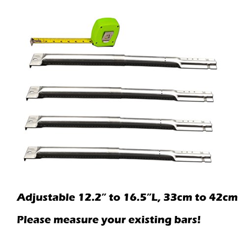 Uniflasy 4-Pack Repair Part Universal Adjustable Stainless Steel Tube Burner Replacement, Extend from 12.2" to 16.5" Fit Most BBQ Gas Grills