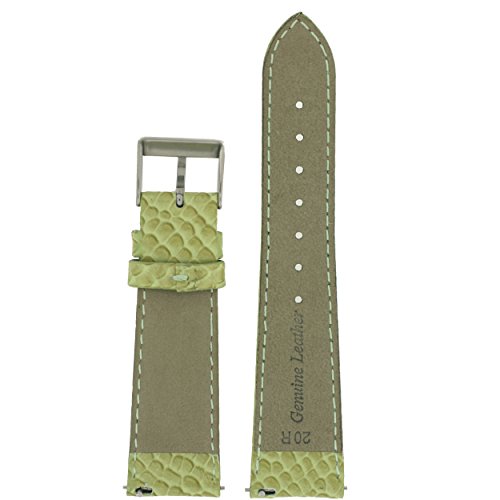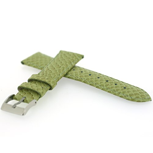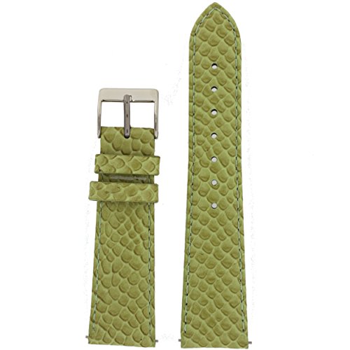 -. Feature : 20mm Watch Band Genuine Leather Snake Grain Green Strap / Band Offers Quick Release Built-In SP.R.Ing Bar Pins for Easy Band Change / Ladies Length Band: 4" Hole Side and 3" Including Buckle / Band Lightly Padded, Slightly Tapered and Matching Reinforced Stitching / Buckle is Silver-tone Stainless Steel and Soft Leather Lining
