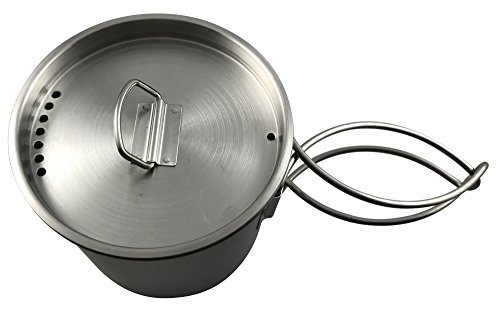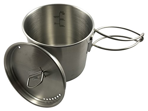 DZO Stainless Hiking Camping Backpacking Cup/Pot with Lid, Folding Handles and Measurement Marks - 20 oz/600 ml size