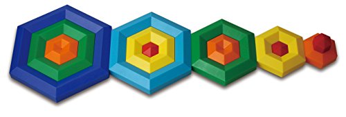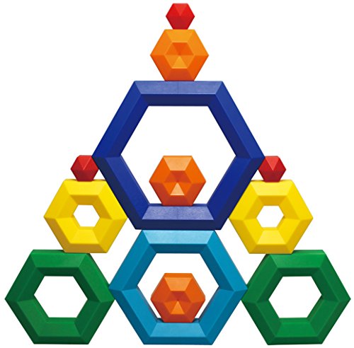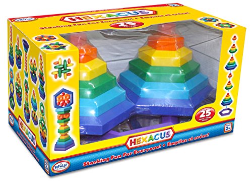 Popular Playthings Hexacus is stacking fun for everyone, and this 25-piece set provides twice as much fun as our original 12-piece set. Even very young children can play and build with these unique pieces designed for little hands. Children can sort the hexagonal pieces by size and color, then stack, nest and balance them to create a wide variety of patterns and shapes. The Hexacus 25-piece set comes with an idea book featuring dozens of patterns and shapes children can build. Award-winning Hexacus was invented by world-renowned designer and artist Peer Clahsen. Playing with Hexacus is safe and fun for children age 2 and up. Popular Playthings provides award-winning toys that encourage learning, creativity, social interaction, and good old basic fun.Feature