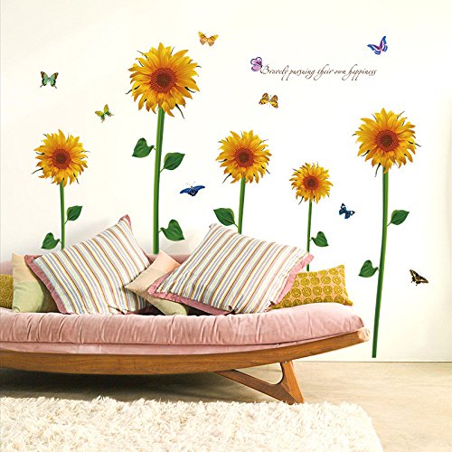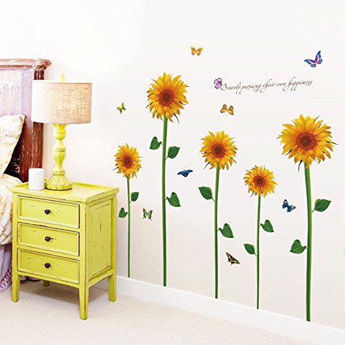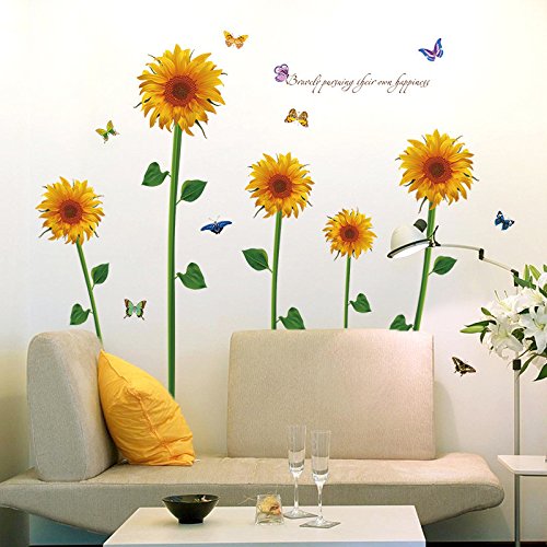 -. Title : EMIRACLEZE Christmas Gift Hot Sale Beautiful Sunflower Floral Removable Mural Wall Stickers Wall Decal for Window Decor Living Room Home Decor