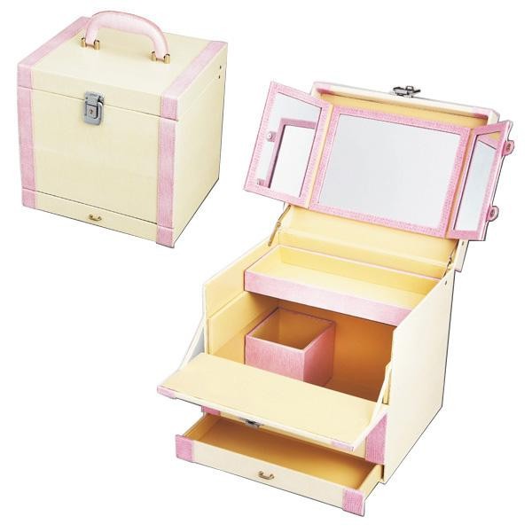 折り畳み式の三面鏡がついたコスメボックスです。ブラシなどを入れる移動式のミニボックスやトレーがついています。化粧道具をまとめて収納、持ち運びが自由で便利です。 |