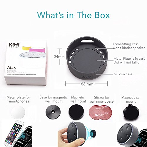 NEED MORE REASONS TO CHOOSE OUR ALEXA CASE FOR DOT ? ? Brightly colored, silicon material,nice touch,small size. ? Dressed up your cute dot well, match your furniture nice. ? A Novel gift for all Dot lovers. ? Round design and suitable size makes the case fit dot well. ? Special design of the hole let it your dot charge easily. ? Four N42-grade high-powered neodymium magnets. Holds your loving Alexa.