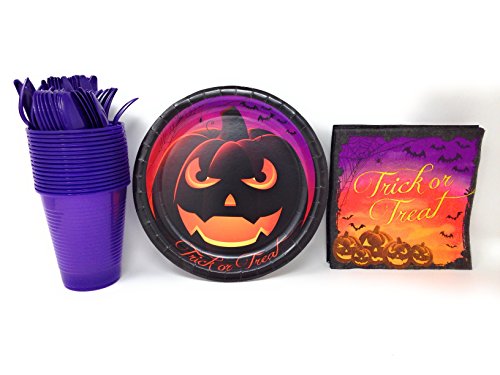 Halloween Trick Or Treat Party Paper Plates Napkins Utensils and Cups for 16 - 100 Pc Set