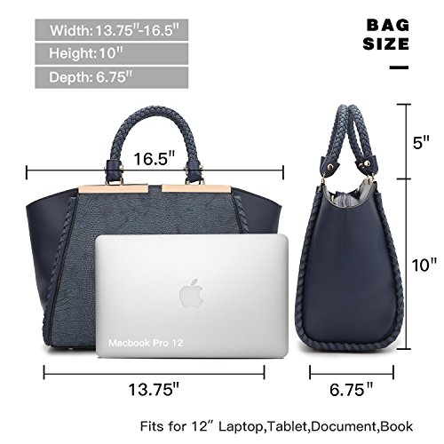 - SPACIOUS DESIGN: Approx. Size of the bag is :(13.75" to 16.5")W x 10"H x 6.75"D. The size of the bag bottom is 13.75" and 16.5" at the winged top. This bag can fit a 12" laptop, and the wider 6" depth allows to fit more stuff like a wallet, clothes, water bottle, make-up case, iPad and so on.