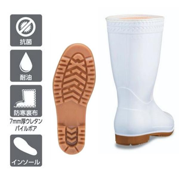 裏布に7mm厚のウレタンパイルボアを使用し、足先がつめたくなりにくい!!耐油性とクッション性に優れた長靴です。抗菌加工の素材を使用しています。