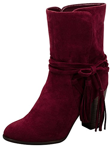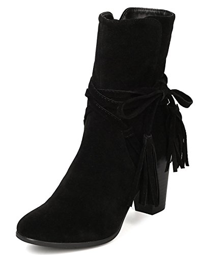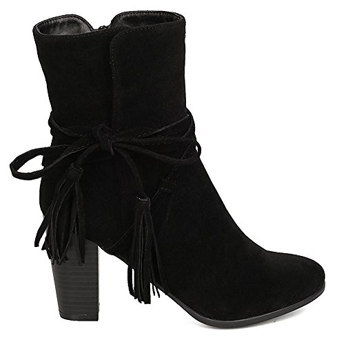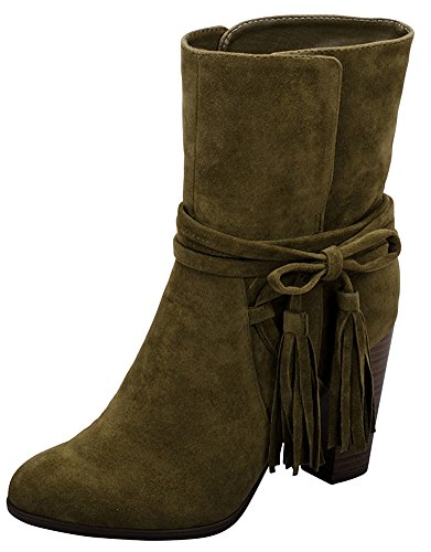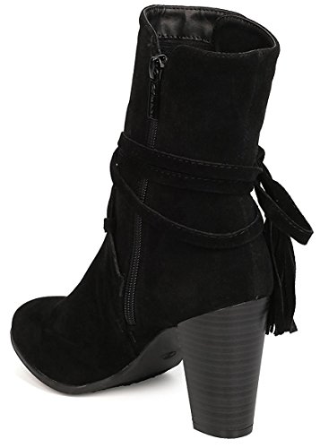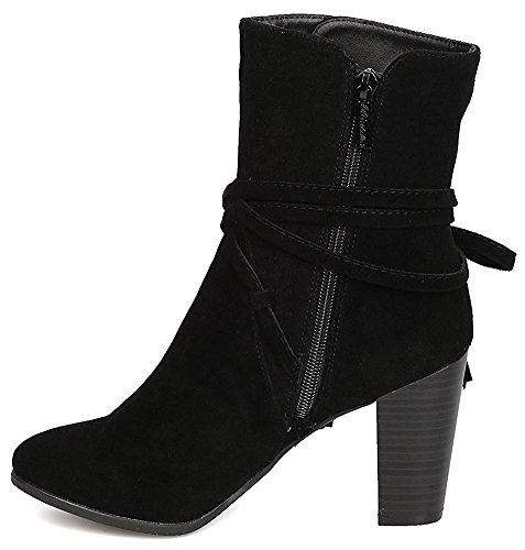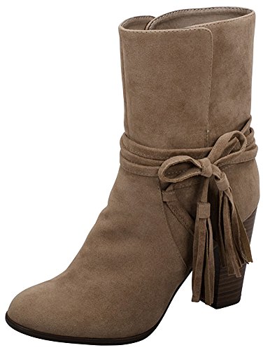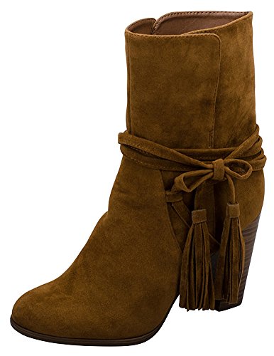 Breckelle's Women's Wrap Around Tassel Western Chunky Stacked Heel Ankle Bootie