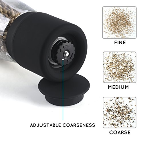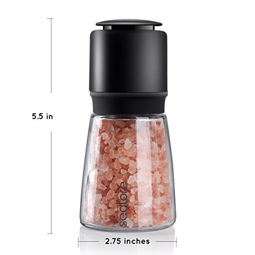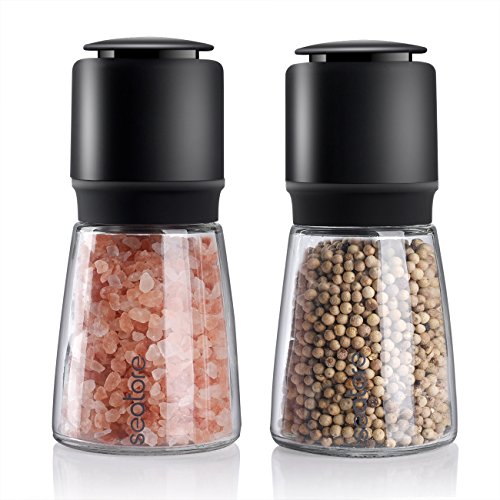 Salt and Pepper Grinder Set, Adjustable Coarseness Clear Glass Body Salt Mills Salt and Pepper Shakers by Seatore