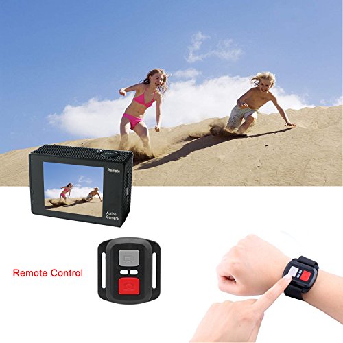 Wireless Remote Control: This HD action camera features a 2.4 G wrist remote control. Up to 15M remote range, splash-proof, long-lasting battery life