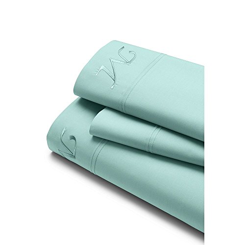 4609815 Lands' End 200 Percale Solid Pintuck Sheets, Q, Light Seagrass