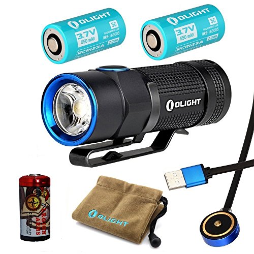 Bundle: Olight S1R Baton S1 rechargeable 900 Lumen LED Flashlight Compact EDC with two customized RCR123A batteries and flex magnetic USB charging cable