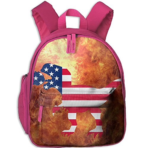 Vintage American Flag Dinosaur School Backpacks For Boys Girls Cute Bookbag Outdoor Daypack Pink