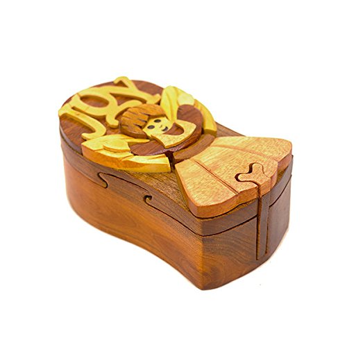 Handmade Wooden Art Intarsia TRICK SECRET Joy Angel Puzzle Trinket Box (3468) (g2)
