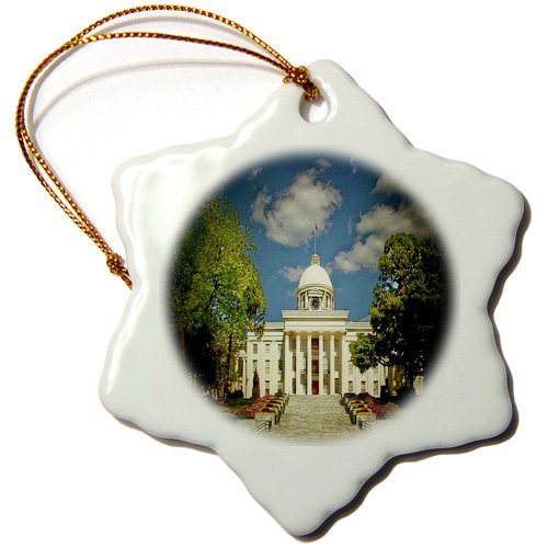 3dRose orn_26222_1 Alabama Capitol Building Montgomery in Spotlight-Snowflake Ornament, 3-Inch, Porcelain