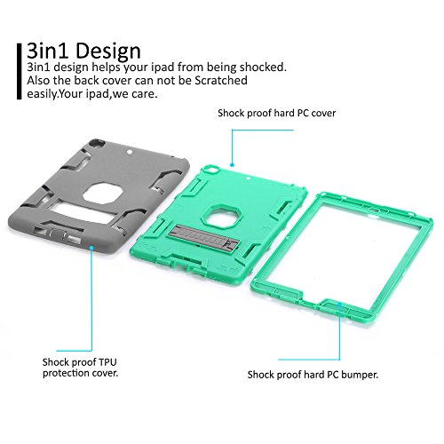 Topsky Hybrid Three Layer TPU Armor Case with Kickstand for iPad Air (5th Generation) - Grey / Green