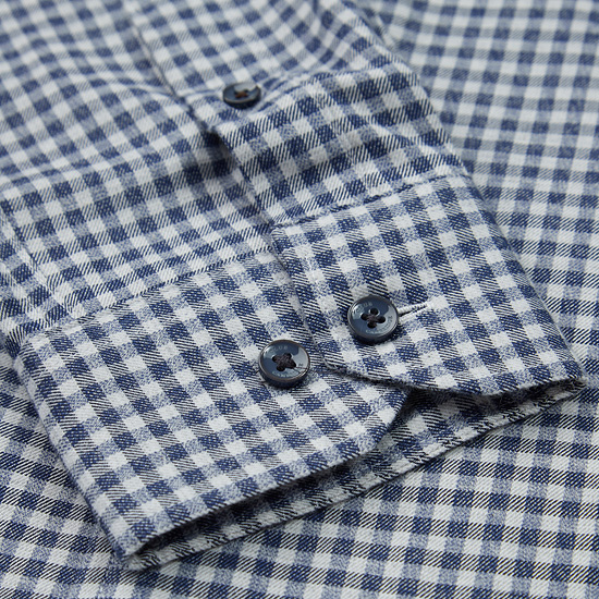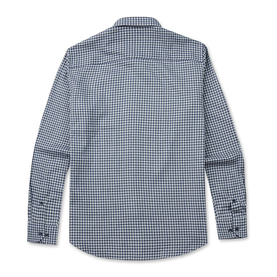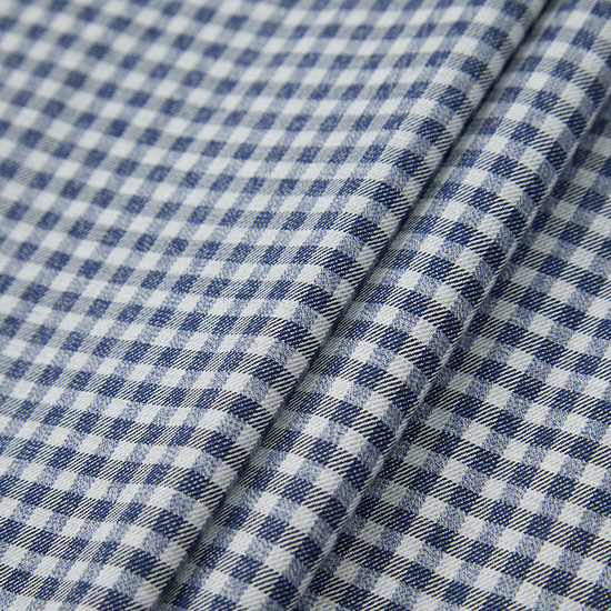- 전면 깅엄 체크 패턴을 적용한 남성 셔츠.