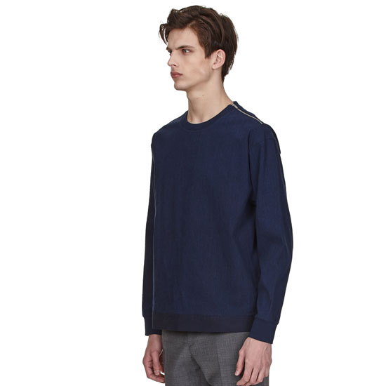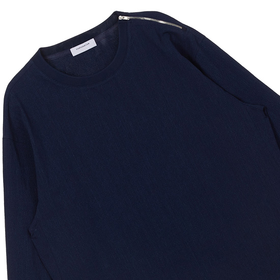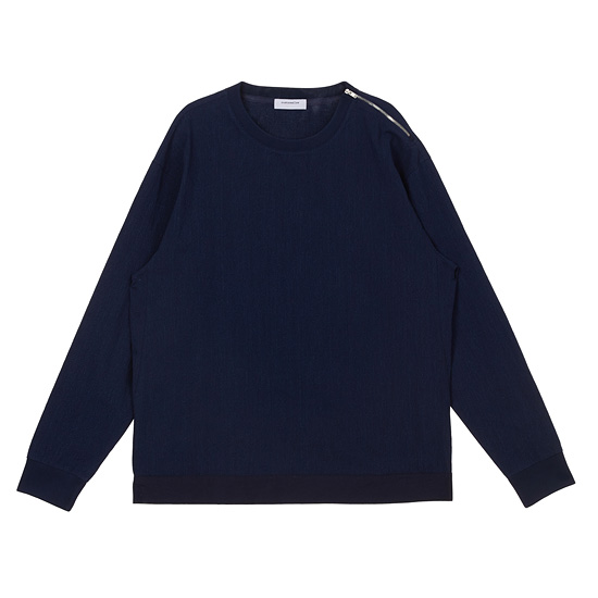 - 숄더 라인 지퍼 디테일이 포인트인 남성 티셔츠.
