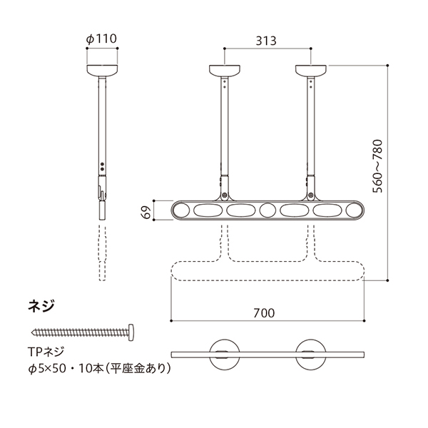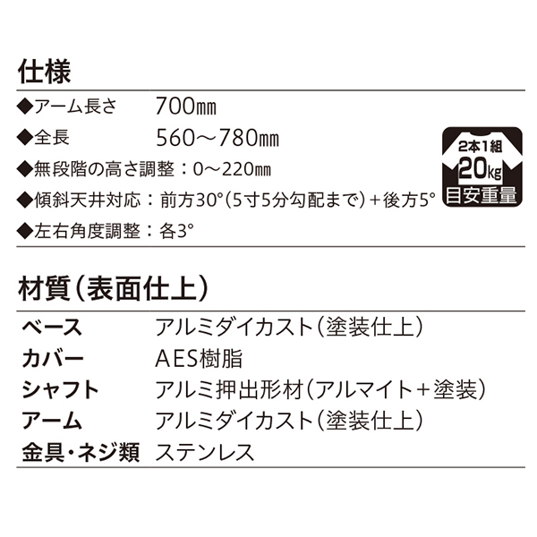 ●スペック:全長560~780mm 目安荷重20kg