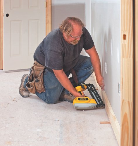 Contact Trip Lock-Off allows trigger to be disabled when not in use. 20-degree angled magazine (up to 120 nail capacity) and will accept DEWALT and most other 20-degree angled finish nails