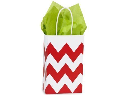 [Product Information]- Our Chevron Stripe Paper Shopping Bags have Bright Red chevron design printed on white paper bag.