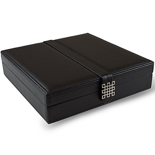 -. Feature : High quality faux leather smooth exterior with belt and stitching detail. A beautiful large mirror on the inside of the lid and design metal on the closure belt adds a nice touch of modern class. Will look great on your dresser or can be put in your drawer. Makes a Great Gift / Each compartment can easily store 2 to 3 pairs of smaller earrings or 1 to 2 larger pairs ... so there's lots of storage space in this case! It can also hold chains, rings, cufflinks, etc. / Comes in 2 styles 25 sections and the 50 sections and a variety of 4 colors to choose from Black, Red, Pink and Blue. / Designed with a lot of compartments to hold each earring pair in a separate section so it is easy to find
