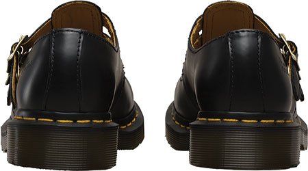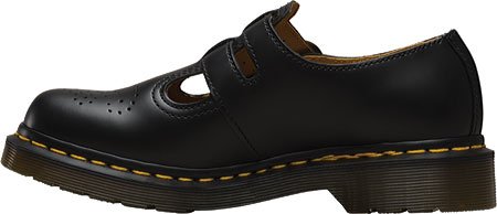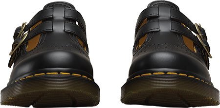 The 8065 Double Strap Mary Janes from Dr. Martens are a great addition to your casual wardrobe. Smooth leather upper in a casual Mary Jane style with a round toe. Welted Construction. Perforated design at the vamp adds interest. Twin adjustable buckles ensure a secure fit. Smooth lining, cushioning insole. Shock-absorbing grooved midsole with signature yellow stitching.Feature