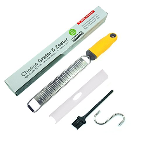 - ❤ EASY TO CLEAN ★Just place this high-end Grater & Zester in the dishwasher or rinse it with BONUS Cleaning Brush thoroughly.