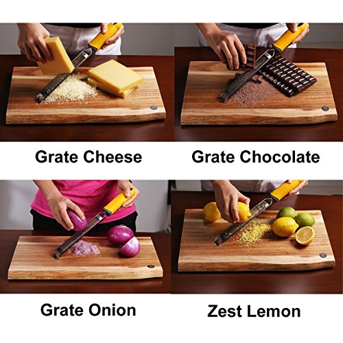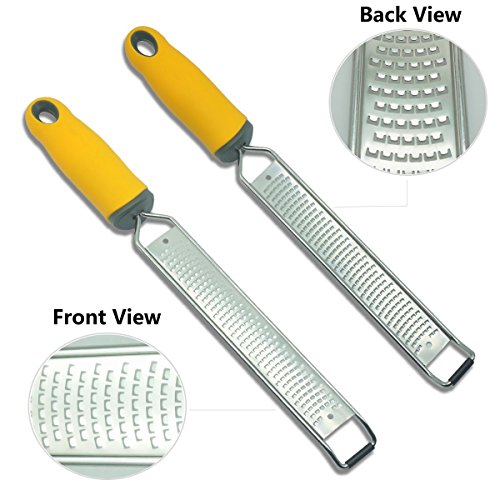 - ❤ TIME SAVER IN KITCHEN ★Once you owned this zester/grater,no more need to spend time to find other tools! Easily prepare ingredients as required. Use it to turn a wedge of hard cheese into a fluffy pile, create ultra light zest from citrus lemon, and grate garlic into a fine paste; etc.