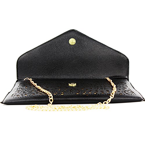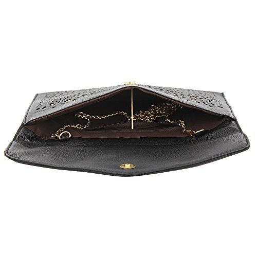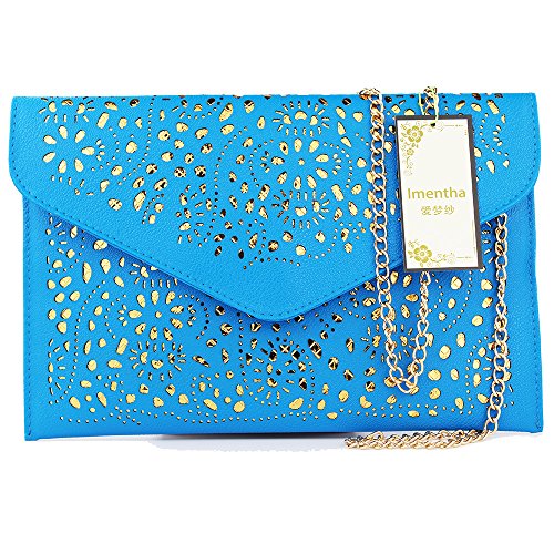 -. Feature : our Own Factory=QUALITY+ Cheap , Approx Size: 12.2*8.3*0.4 in (31*21*1 cm) / USEFUL AND PRACTICAL :100% Brand New,a zipper pocket inside. / STYLISH :This perforated clutch has a beautiful golden background to accentuate the cut out pattern. / MULTIFUNCTION : With a detachable chain,can be used as a shoulder bag,handbag,clutch. / WILD MATCH AND FITTING : Very suitable to take it with you when shopping,dating or evening party, etc .