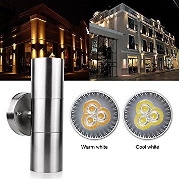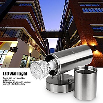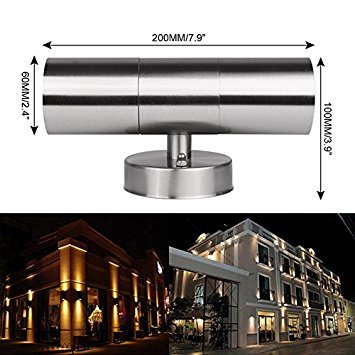 Up Down Cylinder ONEVER Waterproof Wall Sconce Stainless Steel Wall Light Lamp Indoor Outdoor Lighting Fixture Kit 2 LED Bulbs Warm White