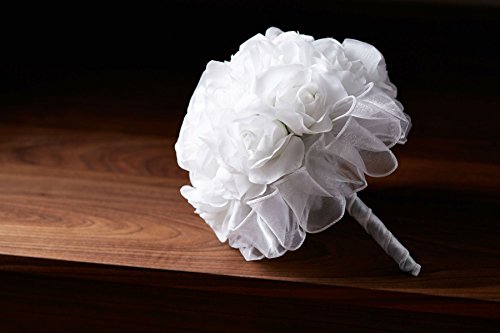 - Title : White Silk Rose Hand Tie (24 Roses) - Silk Bridal Wedding Bouquet
