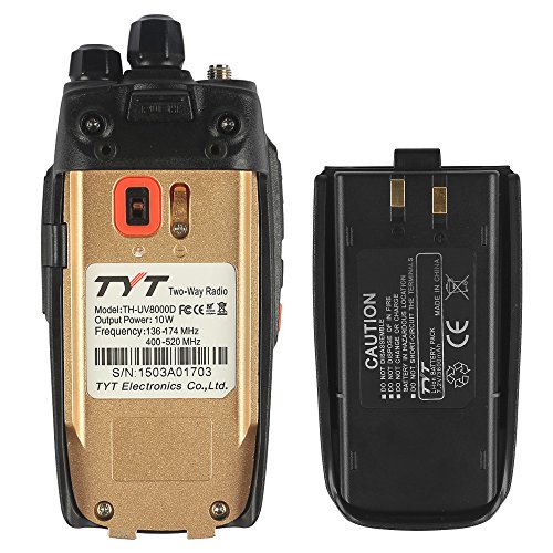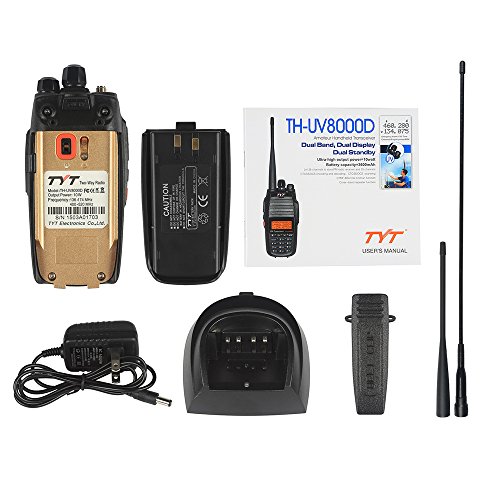 -. Feature : New released by TYT, Dual band, Dual display and Dual standby, you get up to 128*2 Channels to store. Cross-band repeater function is very amazing. / Comes with a High Gain Antenna and a Stubby Antenna. Large capacity of 7.2V 3600mAh. This set is quite suitable for outdoor activities. Ultra high output power UP to 10W to guarantee a farther and stable communication range. / VOX transmitting, TOT, 1750Hz tone, CTCSS/DCS scanning, COMP function, 2 Tone/5 Tone, FM radio function, can store up 25Radio channels, Reverse frequency function. / DTMF encoding and decoding, Channel spacing selectable (25/12.5kHz), Remote Kill/Stun/Activate/Revive, Tri-color background light selectable, Non-standard CTCSS/DCS input. / Programming software: https://s3.amazonaws.com/sanatop/EB/EB0E03SS/TH-UV8000D+Programming+Software.rar