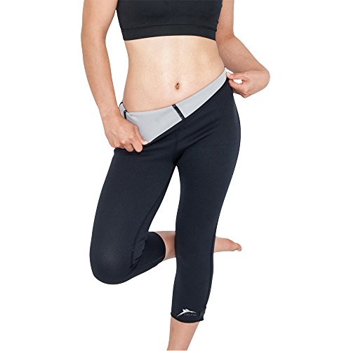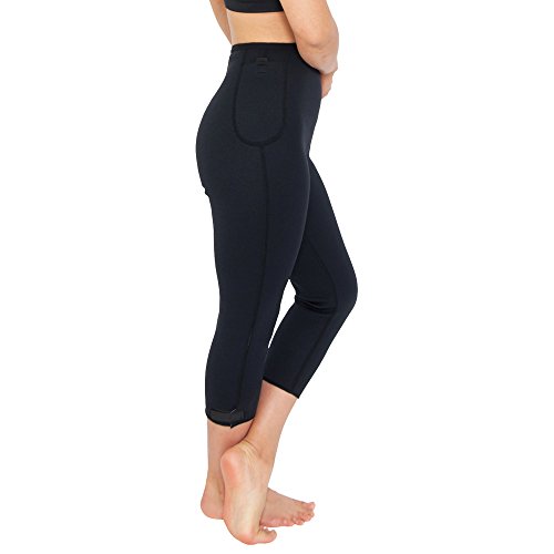 DELFIN HEAT MAXIMIZING CAPRIS are comprised of a thin layer of neoprene embedded with bio-ceramic material, which reflects body heat in the form of Far Infrared Rays (FIR). Soft Nylon/Lycra lining and soft elastic waistband; includes iPhone/phone pocket. Contoured design and ergonomically positioned flat-lock seams to help reduce chafing and increase comfort. Use our capris as part of your daily exercise routine and we recommend for post-pregnancy. The primary benefits may include: improved micro-circulation to help flush toxins, increased perspiration and calorie burning during exercise, and assistance in lessening fluid in fat cells which leads to more pronounced visible cellulite. When used in conjunction with our anti cellulite cream, it helps improve penetration and efficacy of the cream. Please note: if you are in between sizes, choose the smaller size. It's best to measure yourself and compare to our size chart (see pic). Hip measurements listed in size drop down menu (inches).Feature