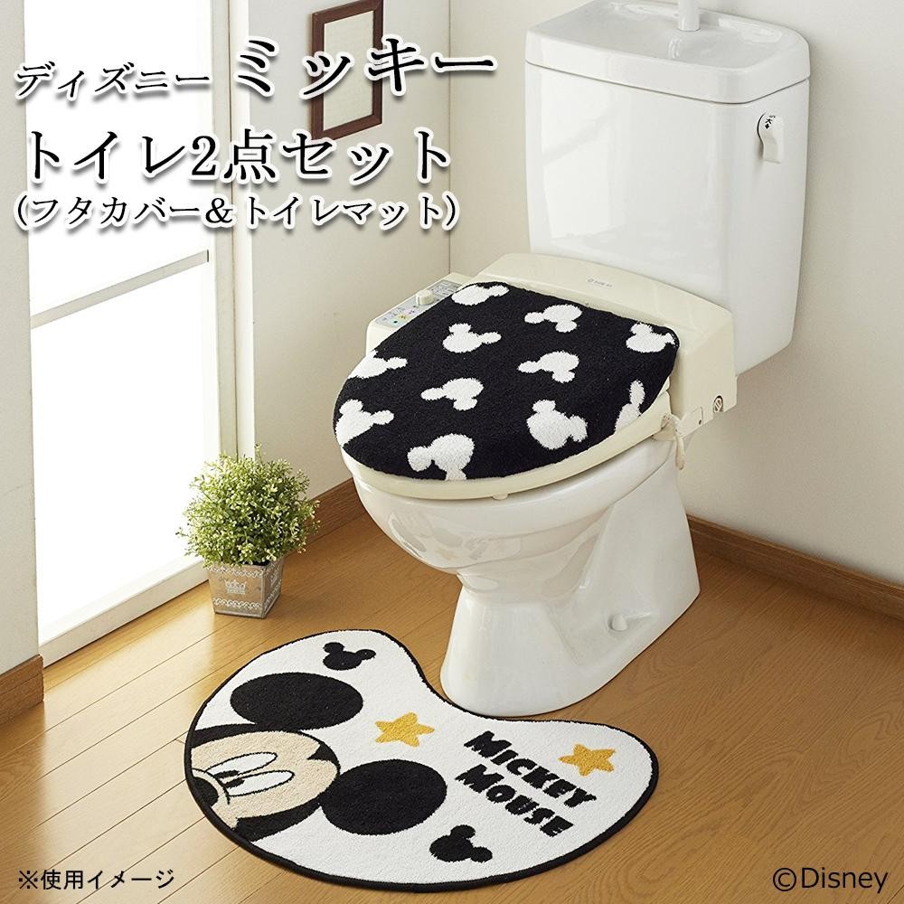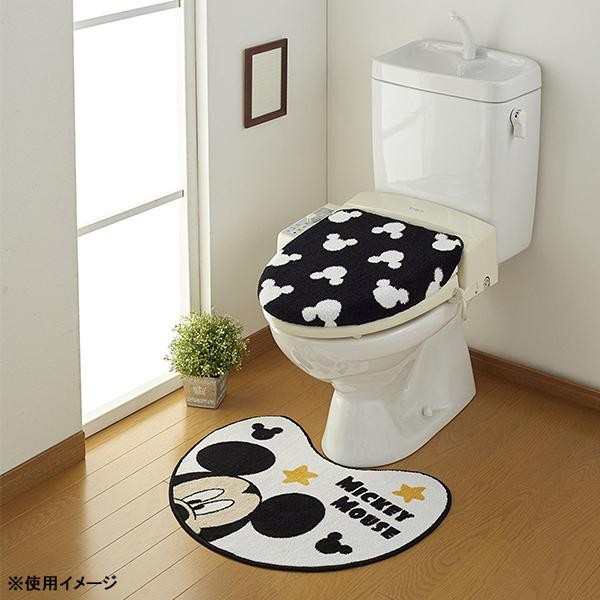 | フタカバーはミッキー型アイコンを散りばめ、マットからミッキーが覗いているデザイン。可愛くも大人っぽくも使えるのでオススメです♪ |