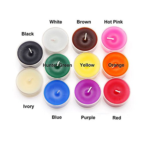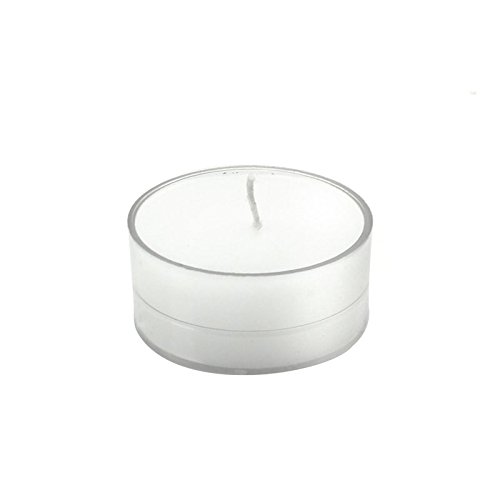Studio : Zest Candle Publisher : Zest Candle Binding : Kitchen Product Description These 4-hour tea light candles are unscented and come in a case 600. Feature plastic cups and a solid color all the way through, these versatile candles create a beautiful candlelight glow for a wedding reception or party.Materials: Paraffin wax/plastic cupsColors: White, ivory, yellow, orange, hot pink, red, blue, turquoise, hunter green, sage green, brown, black, purpleCandle type: Tea lightTotal number of included candles: Case of 600 candles Scent: Unscented100-percent hand pouredBurn time: 4-5 hoursDimensions: 0.75 inch high x 1.5 inches in diameter 0
