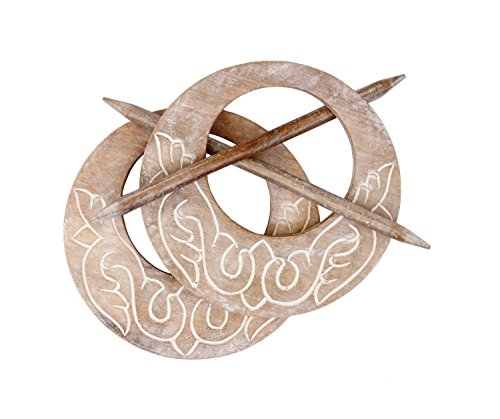 Mothers Day Gifts Store Indya Decorative Wooden Curtain Tiebacks Set of 2 Window Treatment Holdbacks Drape Binds Hand Carved with White Distressed Finish Shabby Chic Home Decor
