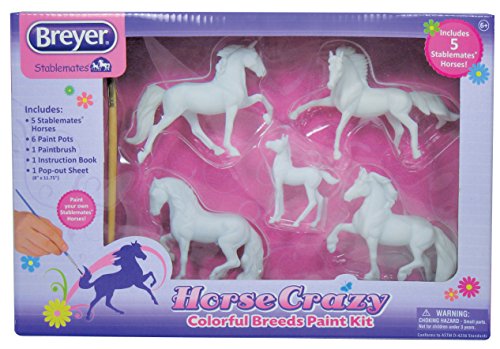 -. Feature : Stablemates are 1:32 scale. / The quality and attention to detail you expect from Breyer, in a smaller size ideal for the young horse lover. / Highly collectible for children and adults alike. / Includes: 5 Stablemates horses, 6 paint pots with realistic horse colors, 1 paintbrush, 1 colorful instruction booklet, 1 sheet of 8 pop-out accessories. / This paint activity set allows young horse lovers to paint 5 of their own Stablemates horses! / This set also includes 6 paint pots, a paintbrush, paintable pop-up sheet and an instruction manual / Manual teaches about painting and horse breeds