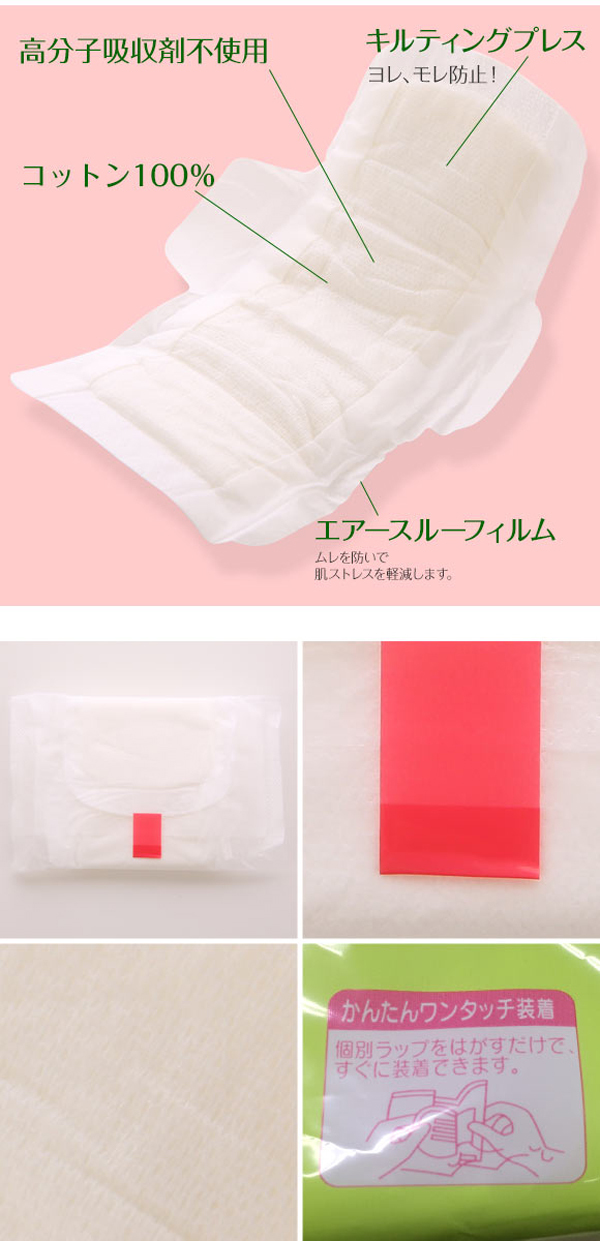 처음"코튼 100%의 톱 시트+고분자 흡수 재료의 사용"을 양립한 상품입니다.