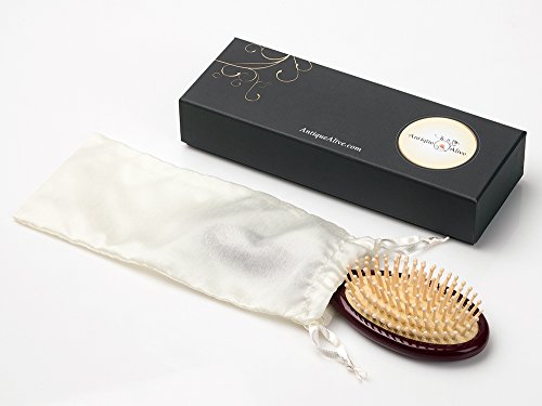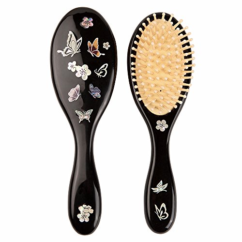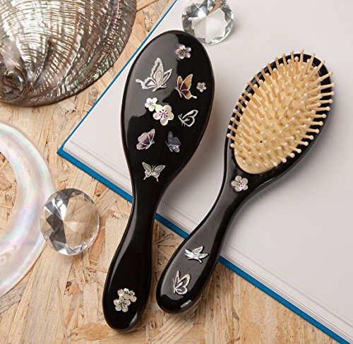 Antique Alive Mother of Pearl Inlay Art Butterfly Luxury Oval Black Women Girl Kids Hair Brush Detangling Anti Static Scalp Massage Comb Wooden Handle...