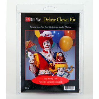 -. Feature : Deluxe clown makeup kit / White kit / Includes: 1 oz Pro Series Clown White Lite, 05 oz Clown Palette (Blk/Blu/Red/Ylw), Black and White Eyeliner Pencils, 2 Latex Wedge Sponges, 3/8" Flat Brush, 3" Satin-top Powder Puff, 04 oz Neutral Set Powder, 1 oz Quick Cleanse Makeup Remover / Great for travel