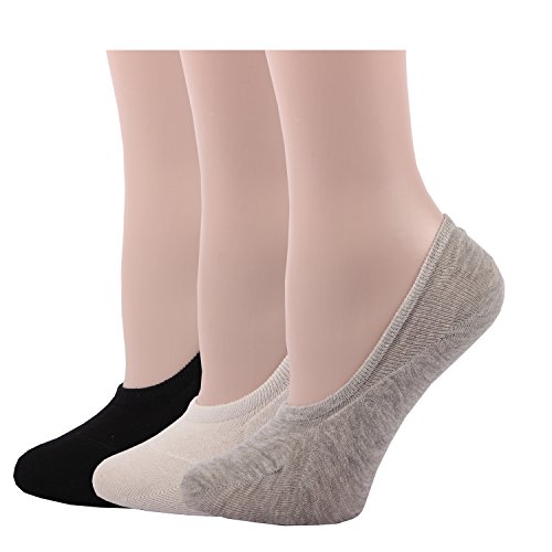 Feature : Feature: Each sock has a non slip grip to help keep the socks on your feet, where they should be. They are perfect for wearing your low cut shoes or loafers / Quantity of 3 pairs Black grey white no-show sock liners to keep feet dry / Perfect for flats, high heels, dance and choir shoe, sports shoes and canvas shoe, etc. / Small/medium fits U.S. shoe sizes 5-9. Medium/Large fits U.S. shoe sizes 5-9.24 / Comfort Invisible No Show Low-Cut Liner Socks