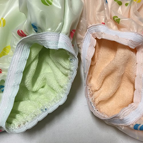 Studio : El estilo Publisher : El estilo Binding : Baby Product Product Description These are very hard to find unique kind of brand new cotton underwears set of 2 They are very convenient potty training pants. The outside has a soft plastic material with bright baby print to avoid any leakage to avoid spoiling your carpet and floor and the mess stays inside. The inside has a very comfortable towel lining that is very good for your child's skin since plastic is not at all good for the skin. The towel material is very soft too to absorb pee . It can be used over the cotton underwear or nappy to avoid leaks. Or it can be just used by itself. It is washable and very durable. The green one will fit from 6 months through 18 months and the yellow one will fit from 12 months- 2.5 years . It has a comfortable elastic on the waist 0