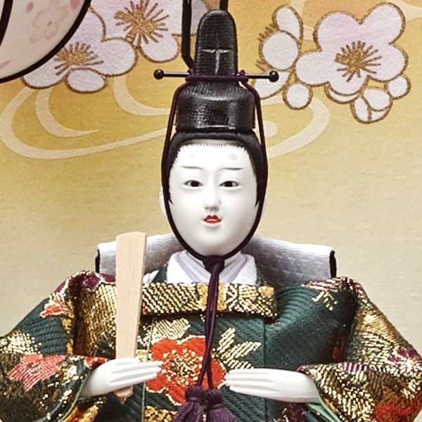・台座・屏風等には落ち着いた色目の雛人形セット。